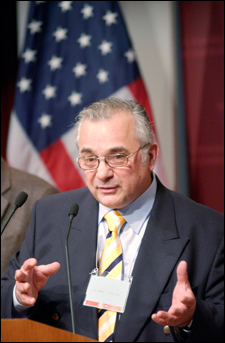 Qazir spoke at the John F. Kennedy Jr. Forum at the John F. Kennedy School of Government Friday (April 8). He delivered the opening keynote speech of the three-day International Development Conference 2005, “Turning the Tide Against Poverty.” The conference was co-sponsored by the Center for International Development (CID), the Harvard Provost’s Office, the Center for the Environment, the CID Mexico Program, the Hauser Center for Nonprofit Organizations, the Center for Public Leadership, the Carr Center for Human Rights Policy, the Harvard Business School International Business and Development Club, and the Kennedy School Student Government.