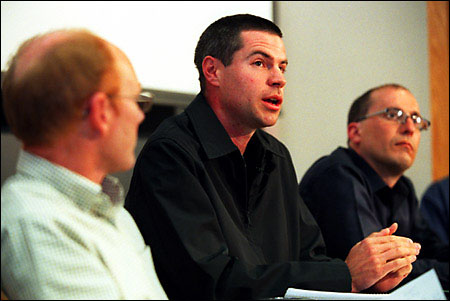 Michael Shellenberger and Ted Nordhaus, whose article “The Death of Environmentalism” has sparked widespread discussion about the successes, failures, and future of the environmental movement in the United States, spoke to a crowded Starr Auditorium in the Kennedy School’s Belfer Center. The article was released at the October 2004 meeting of the Environmental Grantmakers Association.