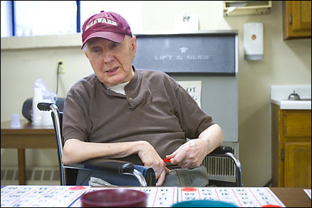 To her left at the table was Seth Adams, who is blind. One week at bingo, Grosteffon said, Adams won four games. “He told me: ‘Eighty-seven years of life, and my luck is just beginning.’”