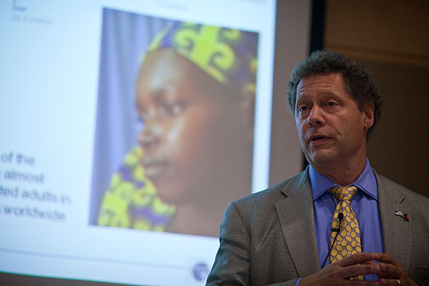 Berkley spoke Tuesday (Nov. 9) at the Harvard School of Public Health (HSPH), where he delivered a Dean’s Distinguished Lecture on the subject. HSPH Dean Julio Frenk introduced Berkley, calling the AIDS pandemic “the single most important public health crisis in the history of humankind.”