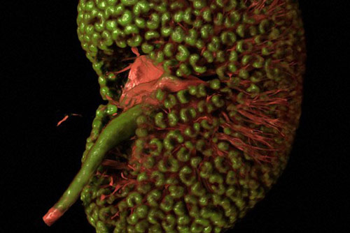 The imaging technique Kao and his collaborators used, called optical projection tomography (OPT), allows scientists to see the structures deep within the kidney with astonishing clarity. Instead of using sliced-up tissue, fluorescently labeled kidneys are left intact and are imaged from all sides to create a three-dimensional picture.