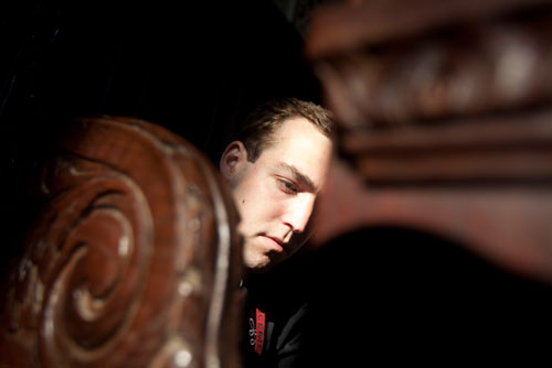 Florid and sweating, Duncan Watts ’12, the drillmaster for the Harvard University Band, took a lunch break in the Yard between programs. Watts, wearing the drillmaster’s traditional black trench coat, was astonished at the age of some of those in the audience whom he and his band had just serenaded, including a 1929 graduate. “I think I’m crunching the numbers wrong,” he said. During Commencement Week, the College gives band members housing and food in exchange for playing at reunion events and official ceremonies.