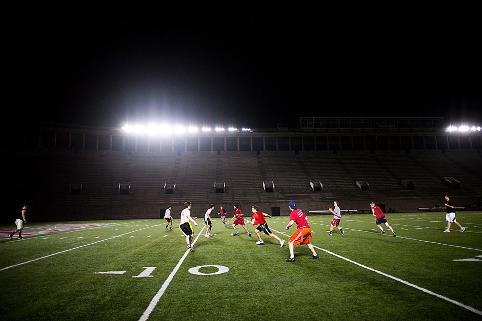 The center of Winthrop House activity and spirit resides in the House masters’ suite with Harvard Law School Professor Ronald Sullivan Jr. and Harvard Law School Lecturer Stephanie Robinson, their sons Trey and Chase (right), and their dog Nietzsche. Sullivan and Robinson made history when they were appointed the first African-American House masters at Harvard in 2009. Stephanie Mitchell/Harvard Staff Photographer Winthrop House has won the Straus Cup, Harvard’s House intramural (IM) sports championship prize, the past three years. IM is serious business at Winthrop, where last year more than 200 students helped to win the title. Stephanie Mitchell/Harvard Staff Photographer The stands at historic Harvard Stadium are empty, the vacant seats and aisles a dim reminder of the raucous crowds at major football games like Harvard-Yale. But most evenings, there is still plenty of action on the field — like the battle for the Straus Cup, where Winthrop House stands as the most formidable contestant. Stephanie Mitchell/Harvard Staff Photographer Undergraduates compete for the Straus Cup in such sports as flag football, soccer, softball, ultimate Frisbee, kickball, volleyball, crew, tennis, basketball, hockey, squash, table tennis, fencing, and dodgeball. Stephanie Mitchell/Harvard Staff Photographer Winthrop quarterback Andrew Badger ’12 (with ball) helped his House dominate, 58-18, against Mather House in flag football. Stephanie Mitchell/Harvard Staff Photographer Allston Burr Resident Dean of Winthrop House Gregg Peeples (far left) celebrates with the team. By the year’s end, Winthrop House claimed the Straus Cup for the fourth consecutive year and the 14th time since 1935. Stephanie Mitchell/Harvard Staff Photographer Harvard undergraduate students who reside in Winthrop House enjoy living among a rich history. Established in 1914, Winthrop consists of two buildings, Gore Hall and Standish Hall, and boasts the longest stretch of river views from any of the river Houses. This statue extends in the courtyard outside the House. Stephanie Mitchell/Harvard Staff Photographer Many of Harvard’s most famous graduates lived in Winthrop House, including John, Joseph, and Edward Kennedy. President Kennedy’s college suite has been furnished as a memorial and is administered by Harvard Kennedy School’s Institute of Politics to guests. Photographs of the president are on display in the room. Stephanie Mitchell/Harvard Staff Photographer Articles and memorabilia from President Kennedy’s time decorate the room. Stephanie Mitchell/Harvard Staff Photographer A bust of President Kennedy is on display in the room. Stephanie Mitchell/Harvard Staff Photographer Winthrop’s library holds many portraits, including this one of John Still Winthrop. Stephanie Mitchell/Harvard Staff Photographer The Winthrop shield is painted on the chairs in the Senior Common Room. Stephanie Mitchell/Harvard Staff Photographer A view of the impressive library in Winthrop House. Stephanie Mitchell/Harvard Staff Photographer Winthrop House residents crowded into the House’s Junior Common Room to attend the inaugural Winthrop Winter Showcase. Step dancers Sarah Peprah ’13 (from left), Kayla Shelton ’13, and Rachel Byrd ’13 perform syncopation, a modern hip-hop style that draws from African roots. Stephanie Mitchell/Harvard Staff Photographer Harvard Ballet Folklórico de Aztlán’s Marisol Romero ’12 and Keith Grubb ’13 (of Adams House) perform La Negra, a type of dance that originated from the Mexican state of Jalisco. Stephanie Mitchell/Harvard Staff Photographer The audience listens closely as Brandon Seah ’11 performs throat singing. Stephanie Mitchell/Harvard Staff Photographer Harvard Ballet Company members Kevin Shee ’11 (left) and Melanie Comeau ’13 (of Quincy House) perform “Reset” by Ricky Kuperman ’11 (not pictured). Stephanie Mitchell/Harvard Staff Photographer Michelle Seslar ’11 of Kirkland House and Lionel Perez ’11, both former members of Harvard’s Candela Salsa Troupe, perform “Se Le Ve” by Andy Montanez. Stephanie Mitchell/Harvard Staff Photographer Max Meyer ’12 was the 2005 winner of America’s Most Talented Kid. At the talent show, he served as master of ceremonies and performed on piano. Stephanie Mitchell/Harvard Staff Photographer Winthrop residents watch their fellow Housemates’ performances. Stephanie Mitchell/Harvard Staff Photographer Students from Harvard Bhangra perform an energetic dance that draws from Punjabi culture and rhythms. Stephanie Mitchell/Harvard Staff Photographer Fresh from a panel discussion at Harvard Law School, stars from “The Wire,” including Michael K. Williams (Omar), Andre Royo (Bubbles), Sonja Sohn (Kima), Jim True-Frost (Pryzbylewski), and Jamie Hector (Marlo) — plus Donnie Andrews, the real-life inspiration for the notorious antihero Omar, and his wife Fran Andrews — attended a dinner in their honor at the river House. The evening’s regal-looking menu features the Winthrop House crest. Stephanie Mitchell/Harvard Staff Photographer Harvard Law School student Lea Downey (left) speaks with Andre Royo, who played Bubbles. Stephanie Mitchell/Harvard Staff Photographer Harvard Law School student Milton Wilkins (left) and Jamie Hector, the actor who played Marlo Stanfield, speak during the dinner. Stephanie Mitchell/Harvard Staff Photographer Harvard Law School Professor Charles Ogletree addresses the gathered guests. Stephanie Mitchell/Harvard Staff Photographer Harvard Law School student Brittany Brewer (center) speaks to “The Wire” star Andre Royo. Stephanie Mitchell/Harvard Staff Photographer Fran Andrews (from left) and Donnie Andrews are pictured during the dinner. Donnie Andrews is the basis for the famous antihero Omar in “The Wire.” Stephanie Mitchell/Harvard Staff Photographer Cora True-Frost (from left), Jessica Sequeira ’11, and Jim True-Frost, the actor who played Roland Pryzbylewski, attend the dinn