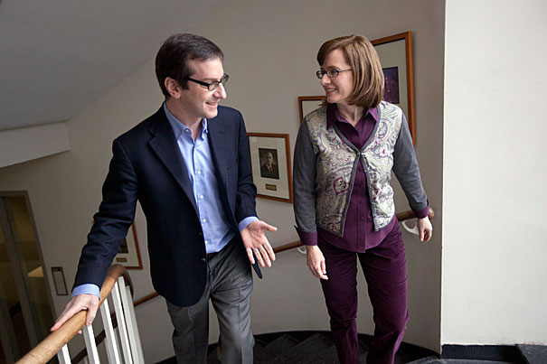 “If you give people bad options, even if you explain the characteristics that make them bad, many people will still choose those options,” says David Laibson, pictured with Harvard colleague Brigitte Madrian. Along with co-author James Choi of Yale, Laibson and Madrian were recently honored with the TIAA-CREF Paul A. Samuelson Award for research on investment decisions.