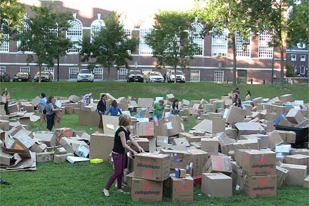 The idea for the temporary fort came to D’Asaro during her sophomore year when she saw how many cardboard boxes went to waste after the annual student move-in. She brainstormed the idea of the box fort as a creative way to highlight the serious issue of waste.