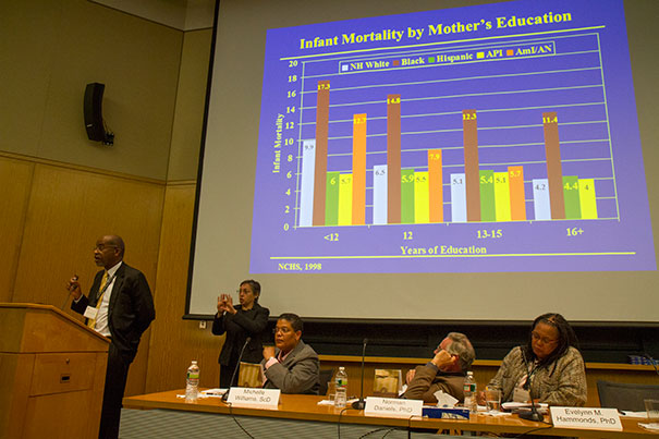“Health disparities are not new. They didn’t appear in America in 2002,” said Harvard College Dean Evelynn M. Hammonds, the Barbara Gutmann Rosenkrantz Professor of the History of Science and of African and African American Studies. Hammonds referred to a 2002 report by the Institute of Medicine on health disparities that has been credited with bringing the issue to the fore. She pointed out that not only has the issue existed for centuries, it was examined more than 100 years ago by W.E.B. Du Bois.