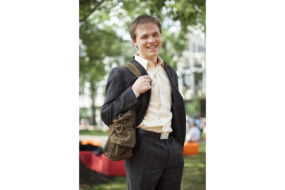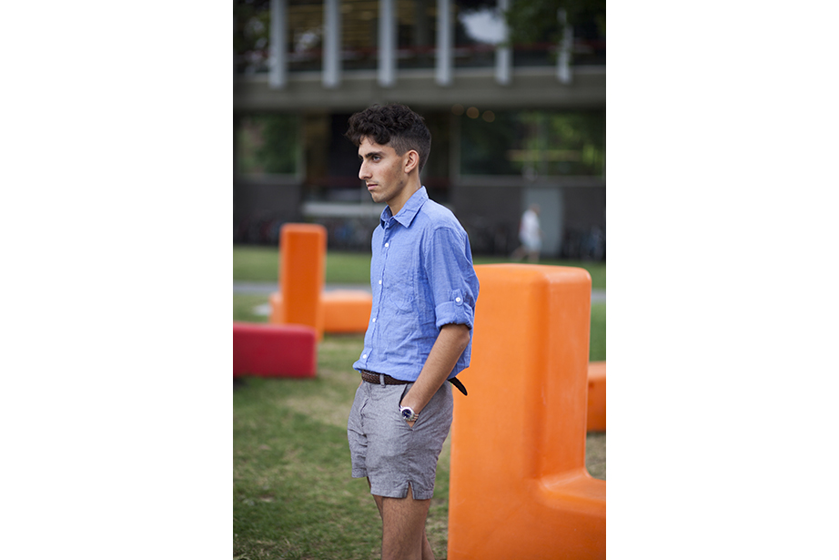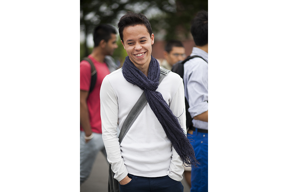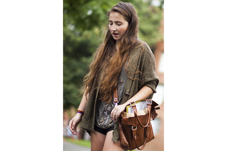 “I’m a big fan of crop tops — I’m only 5’3” so I do what I can to look taller, and crop tops are huge right now,” said Sydney Sykes ’16. Sometimes your girlfriend’s scarf is just the thing to elevate a simple, white top. “She left this blue scarf in my dorm room and I wanted to coordinate something with it,” said Garrett Lam ’16. “Cape Cod is really preppy and I’m not,” said Julia Argy ’17 of Cotuit, Mass., who paired tiny shorts with a slouchy cardigan. “For college, I wanted to wear less colorful, more toned-down clothes. I’ve been buying utilitarian pieces I can wear with everything.” “This is an Israeli outfit,” said Lior Gallo, a visiting fellow in economics. “This is the way we dress when we hang out in the winter and although it’s not winter here it’s freezing in the library!” “I was kind of in a rush today and I wanted to wear a skirt or dress when I still could,” said Summer Carter ’16. “My style is a little trendy but classic — I have a lot of black and white in my wardrobe.” “My style is definitely girly. I love mixing patterns, even though I’m in all black today,” said Diana Janec, the fashionable face behind the style blog Dressed-Up Alligators. It only took Evan Grandfield ’17 a few minutes to get dressed — classic button-down, rolled to the elbows, and a surprising pair of shorts. “My style is prepster,” he said. Denim jacket lovers Zach Zenk and Danielle Bochneak drove from Brattleboro, Vt., to hat-shop in Cambridge. “People are more put-together here,” said Zenk. Lotus Cannon ’14 shows a hint of skin on her way to have her yearbook photo taken. “So far I’m impressed with Harvard style,” said North Carolina native and Harvard Law School student Krista White. “In the winter I think it’ll be more fashionable here with more items to choose from.” “I’m naturally very cold so this hot weather is ideal right now,” said Sean Weller ’17 of Boulder, Colo. “I always try to make up an excuse to dress up. In high school I wore suits two to three days out of the week. I had the reputation of ‘that kid who wears suits.’” “Fashion? Is there fashion at Harvard?” asked Adam Mestyan, a postdoctoral fellow. “I wanted to take advantage of the last warm days and I wanted to feel summery today,” said Mayra Espinoza-Martinez ’15. “Most of my clothes are summery because I’m from California, but I’ve bought a bunch of fall pieces to bridge between there and the East Coast.” “I spent the summer in Paris and I kind of miss it, and I wanted to be a little bit Parisian today,” said Sarah Berlow ’14, who was headed to her birthday dinner in Inman Square. “I built my outfit around the tie,” said social studies lecturer Eric Malczewski. “I wanted to wear something irreverent.”