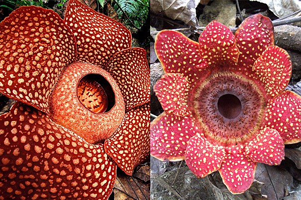 Harvard researchers have solved the nearly 200-year-old mystery of how Rafflesia, the largest flowering plants in the world, develop. The Rafflesia (left) and Sapria closely resemble one another yet are actually built in fundamentally different ways, noted Harvard Professor Charles Davis. While the study sheds new light on how these plants develop, Davis said it may also help to explain how Rafflesia in particular attained such huge flowers.