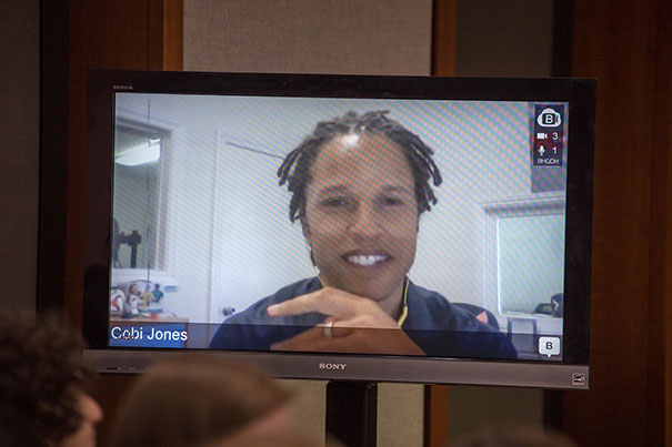 Cobi Jones (photo 2), former Major League Soccer player and member of the U.S. men’s national soccer team, joined via satellite as Ed Foster-Simeon (from left), Elizabeth Matzkin, and Robert Blendon were among the panelists for “Sports and Health: The State of Play in America,” a talk moderated by NPR’s Joe Neel on why participation in sports drops dramatically as people age.