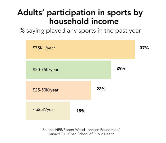 Foster-Simeon argued that one reason for the income disparity reported in the poll — which found that lower-wage earners were less than half as likely to play sports than adults with higher incomes — is the lack of free programs and safe places to play in many low-income communities.