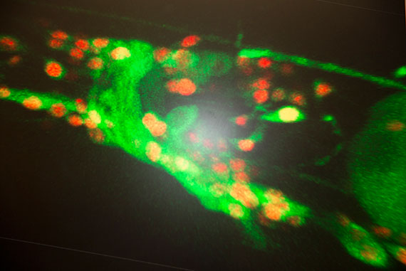 “What we’re doing is capturing these volumes and trying to figure out where the neurons are in that volume,” he said. “Every frame will have the neurons in slightly different positions, because the worm distorts itself as it crawls … so we wrote software that can track where those neurons are over time.”