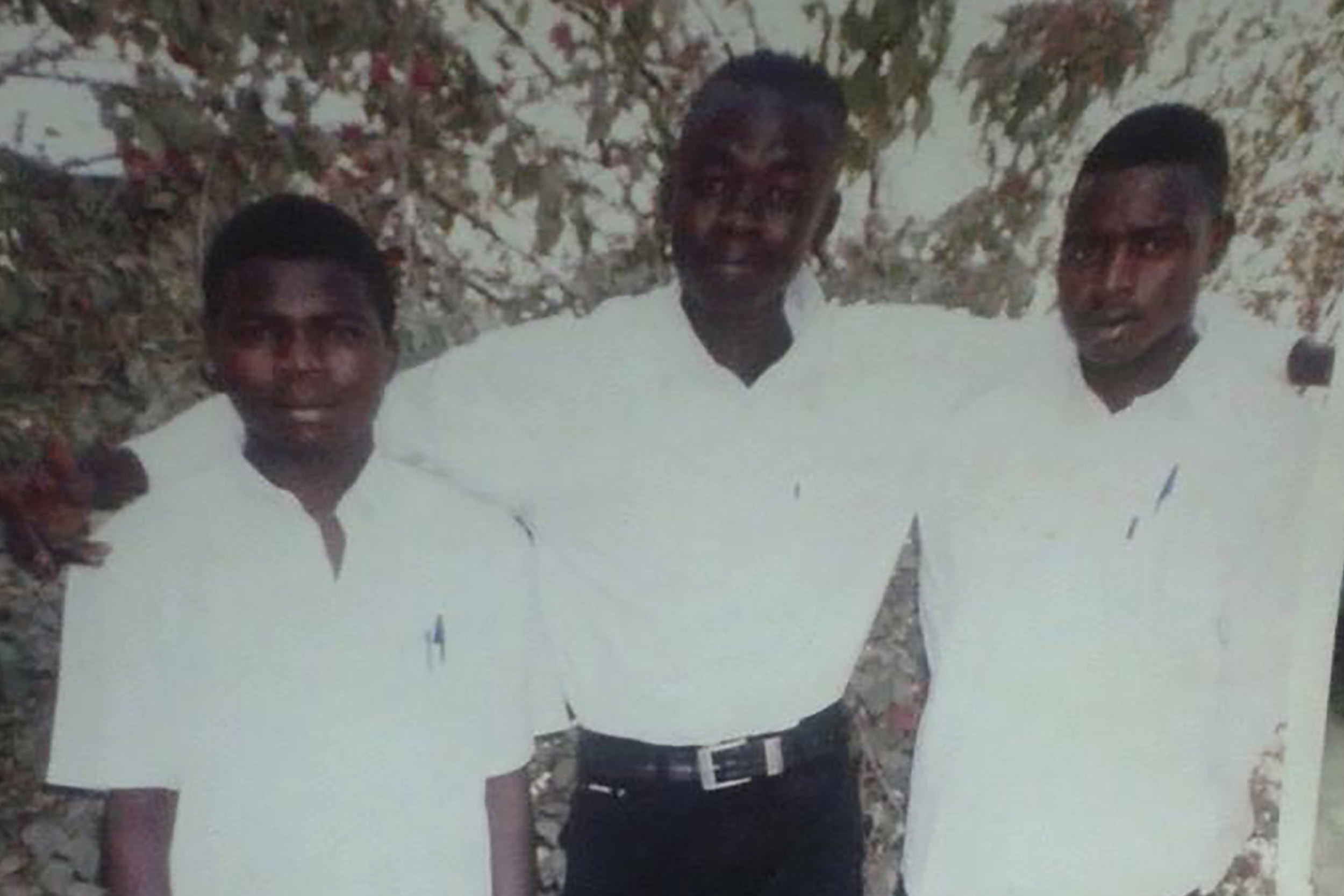 Image 1: Guy is currently enrolled at Harvard Extension School. He hopes to graduate in 2020. Image 2: A younger Guy (center) with classmates.