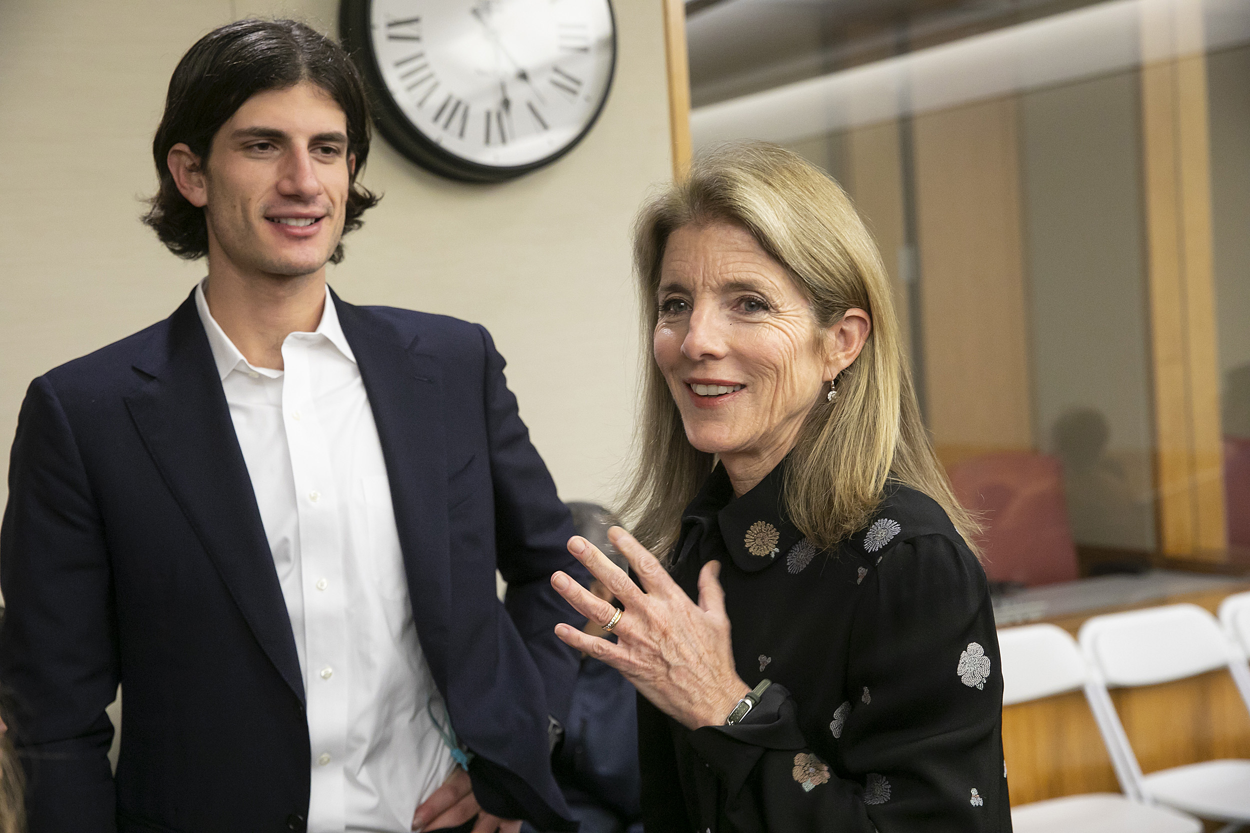 Caroline Kennedy with her son, Jack Schlossberg, a student at Harvard Law School. Schlossberg introduced Kennedy at the Harvard Asia Center’s 14th Tsai Lecture.