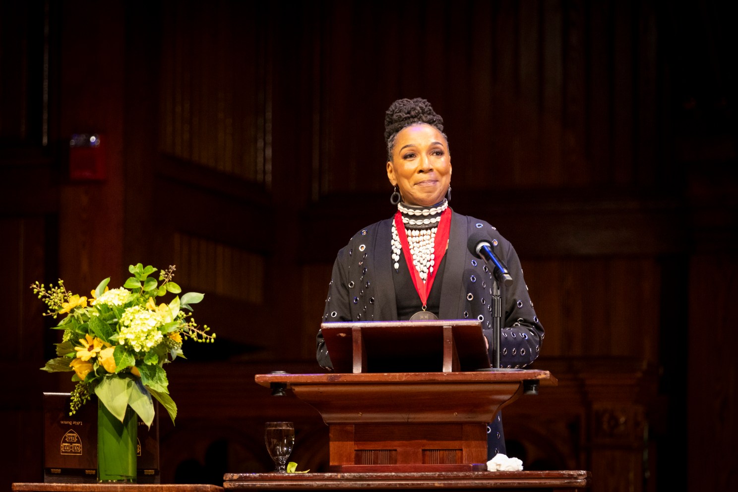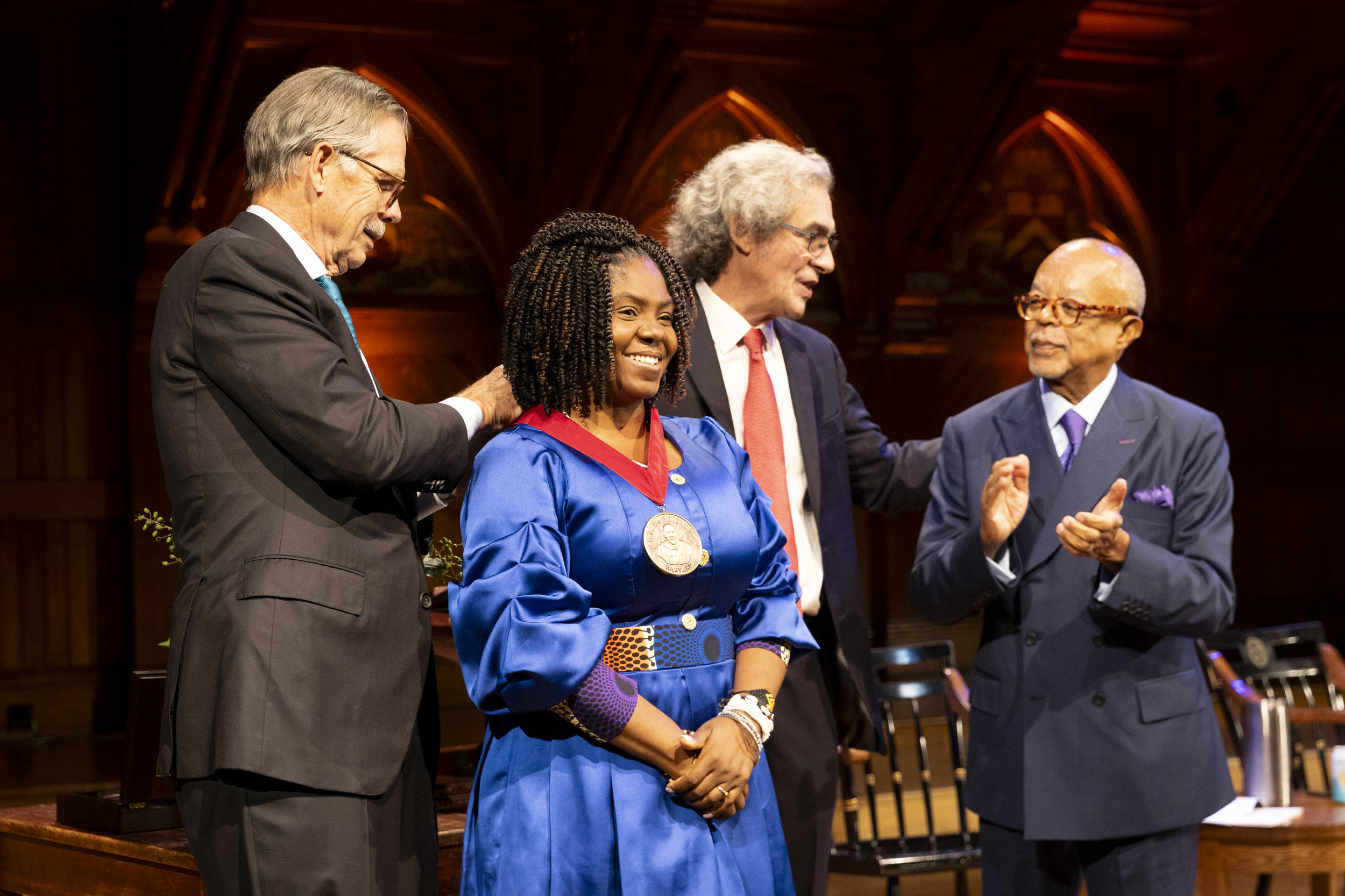 “I am overwhelmed with pride to accept this medal from the Hutchins Center, from my alma mater, and from Skip Gates,” she said. “It’s exceptionally meaningful for any race scholar to see one’s own name in the same sentence as the foremost scholar, activist of the 20th century, Dr. W.E.B. Du Bois.”