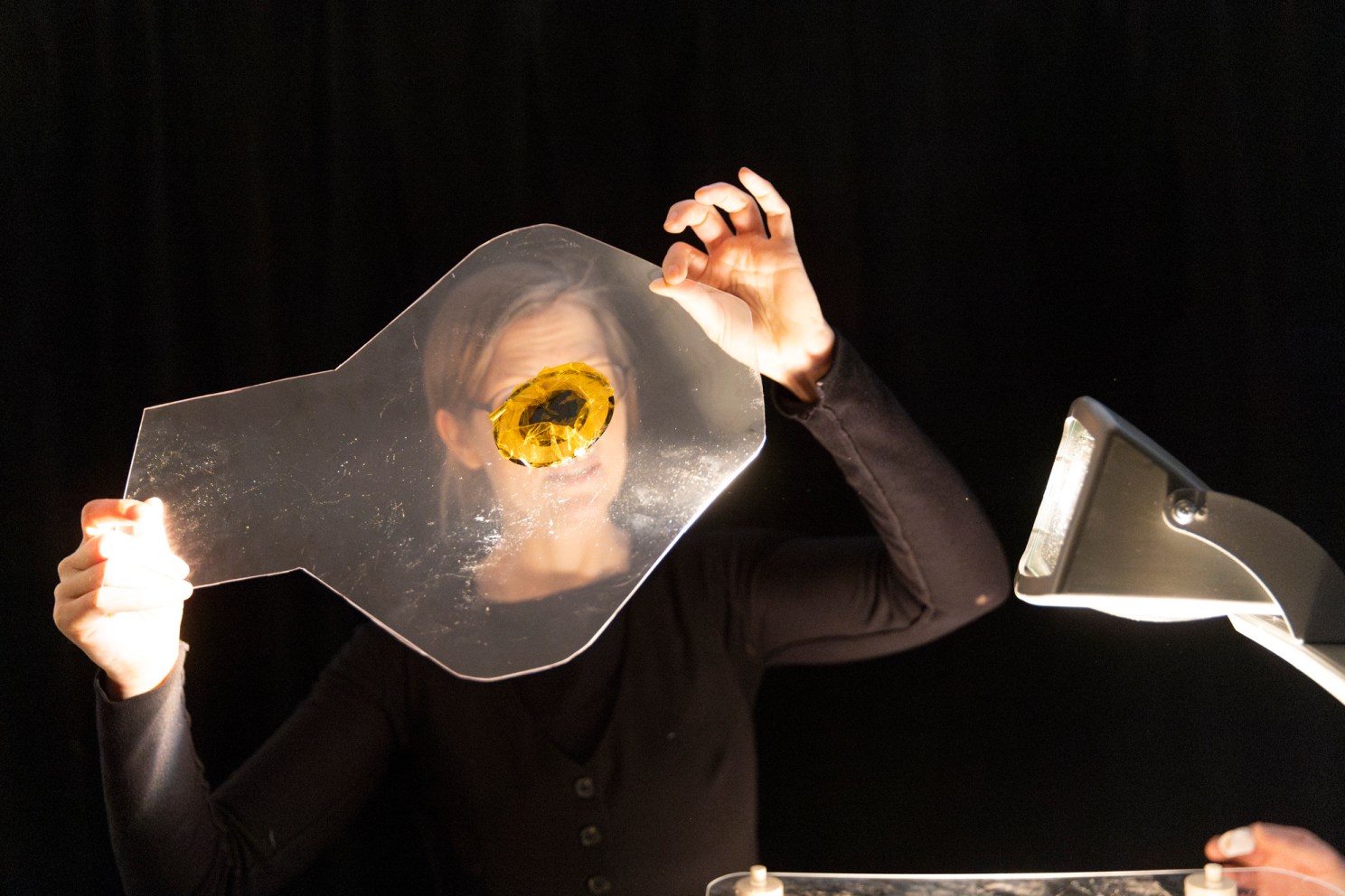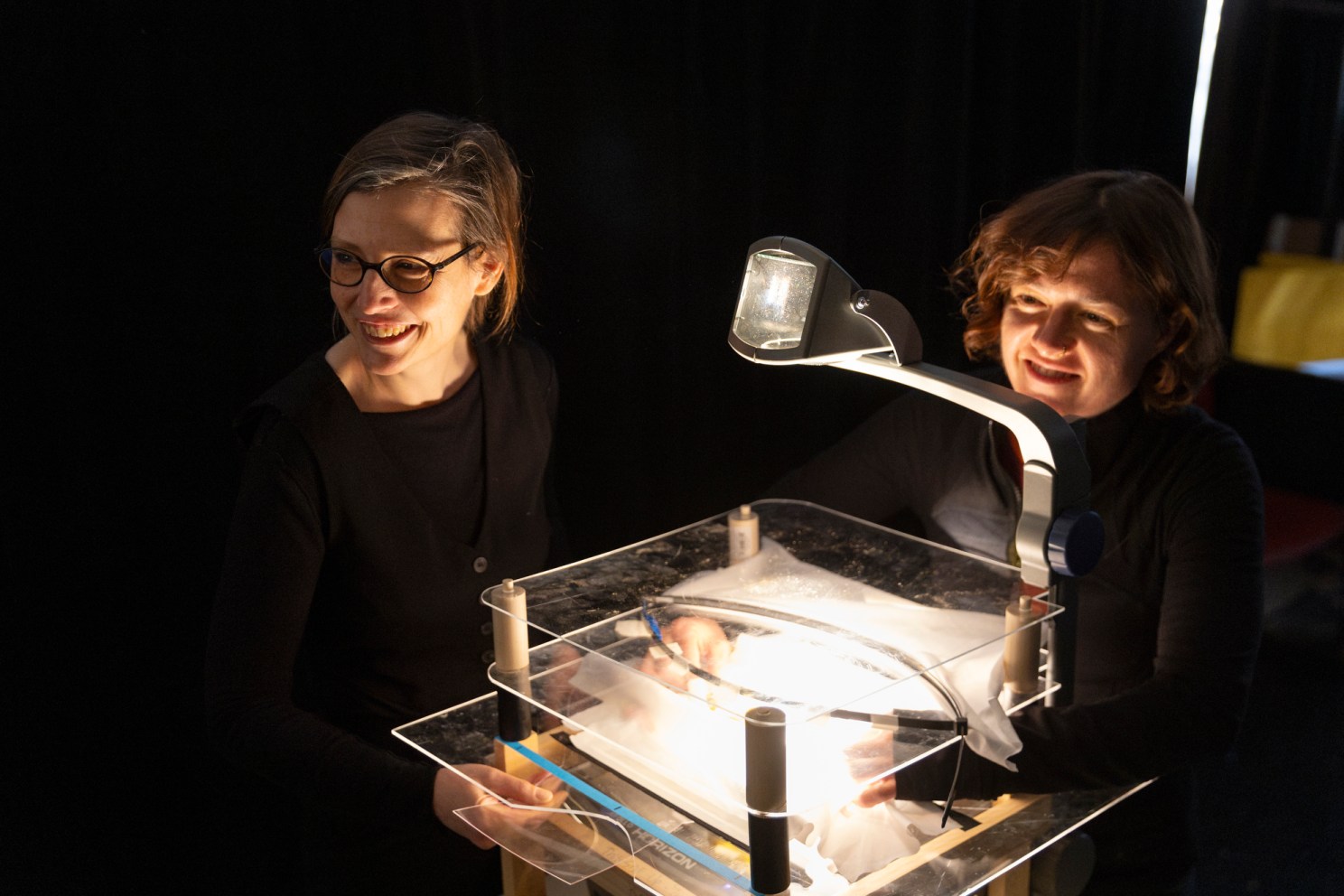 Brehm (left) and Abigail Baird project the Cyclops’ eye.