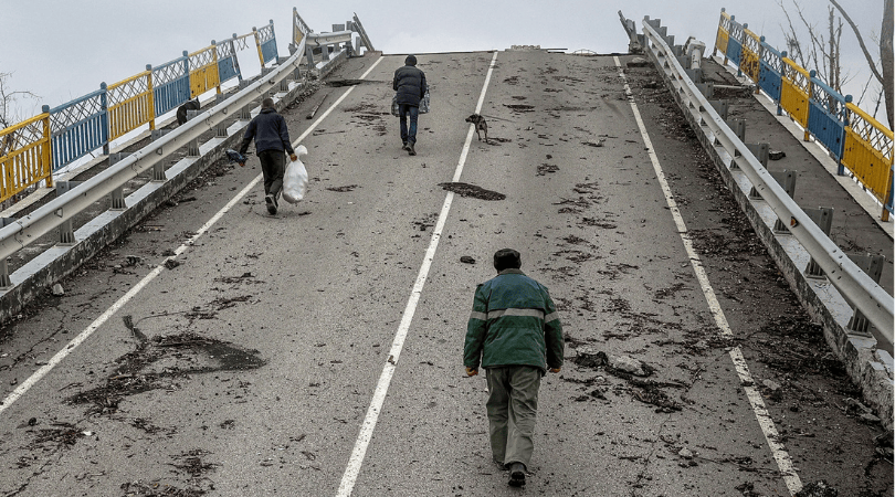 By March 19, Maria decided they needed to leave. They had no more candles or matches. “We were just walking by inertia, in the darkness. I was trying to feel my way to the doors to get out of the basement.” She and her sister gathered their possessions in the apartment, letting the children get a better sleep in the beds a final time before departing in the morning. Through the middle of the night, Maria and her sister pumped breast milk for the journey to ensure that they would not need to lift their shirts and could calm the babies with bottles in a pinch. As they pumped in silence, they heard a whistle and planes roaring overhead. Somewhere near them an air assault was underway, and when the bomb dropped, they felt their building sway, the furniture sliding across the floor.