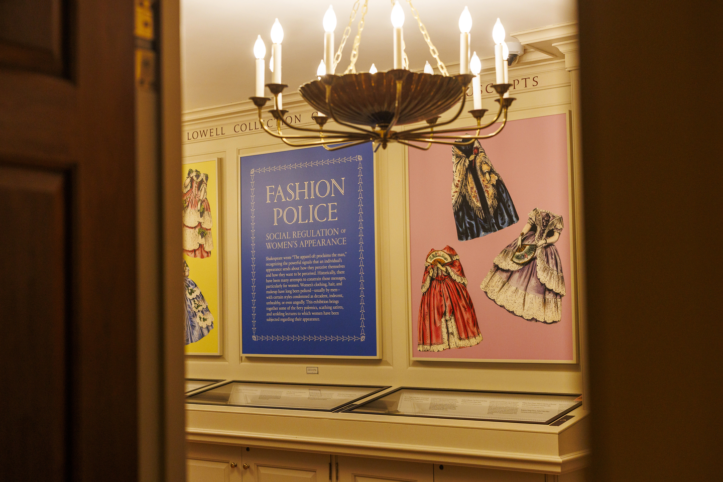 It’s one of the reasons he co-curated the exhibit “Fashion Police: Social Regulation of Women’s Appearance,” which is currently on display at Houghton Library. Overholt pointed to the Shakespearean quote, “The apparel oft proclaims the man.”