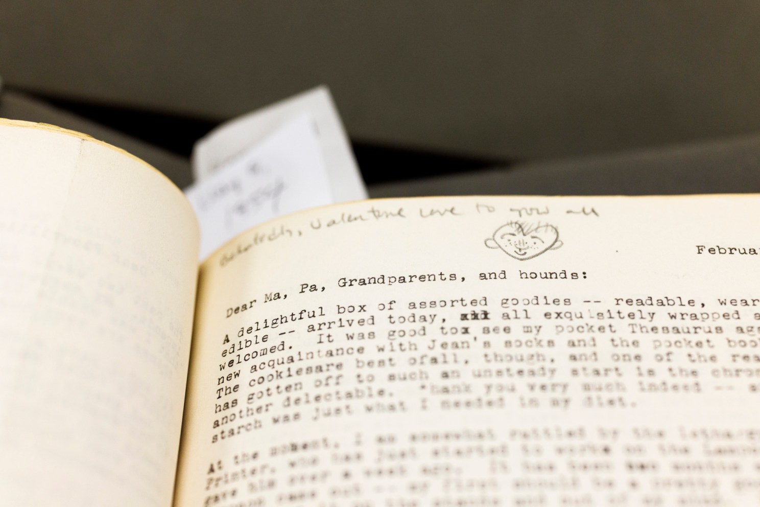 Updike started writing letters as a teen, when he sent fan notes to cartoonists and artists he admired or submissions to magazines from his family farm in Plowville, Pennsylvania. His love for words was inspired by his mother, an aspiring writer. During his years at Harvard, between 1950 and 1954, Updike wrote about 150 letters to his parents about his courses, his roommates, and life in general. His letters from Hollis Hall show a writer with a keen eye and an already precise and refined writing style.