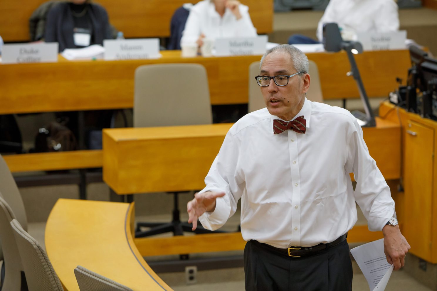 Presenters included Professors Peter Huybers of Harvard’s John A. Paulson School of Engineering and Applied Sciences, Richard Lazarus of Harvard Law School, Robert N. Stavins of Harvard Kennedy School, Forest Reinhardt, John Macomber, and Amy Edmondson of HBS, James Engell of the Harvard Faculty of Arts and Sciences, former Secretary of the Navy Ray Mabus, and artist Zaria Forman.