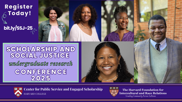 For the last decade, the Scholarship and Social Justice Undergraduate Research Conference has been a platform to uplift undergraduate students’ research focused on challenges facing society. The event, co-sponsored by the Center for Public Service and Engaged Scholarship at Harvard College and the Harvard Foundation for Intercultural and Race Relations, connects student presenters with faculty and staff mentors in academia in an inter-collegiate setting.