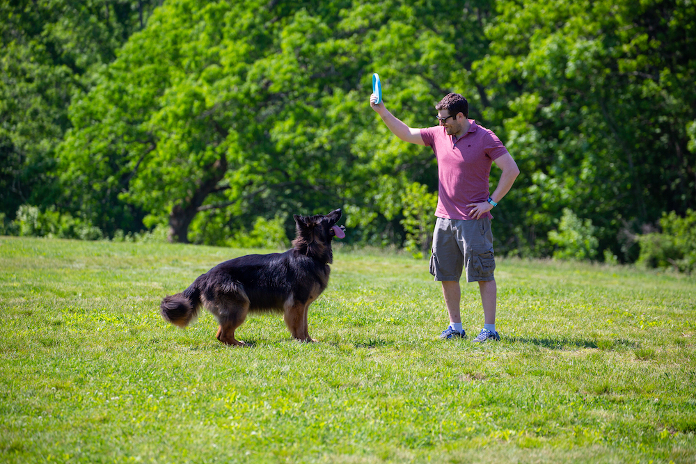 Noah Davidsohn, CTO of Rejuvenate Bio and former Wyss Institute research scientist, was inspired by his German shepherd, Bear, to develop a gene therapy that can help dogs live healthier lives. Credit: Wyss Institute at Harvard University