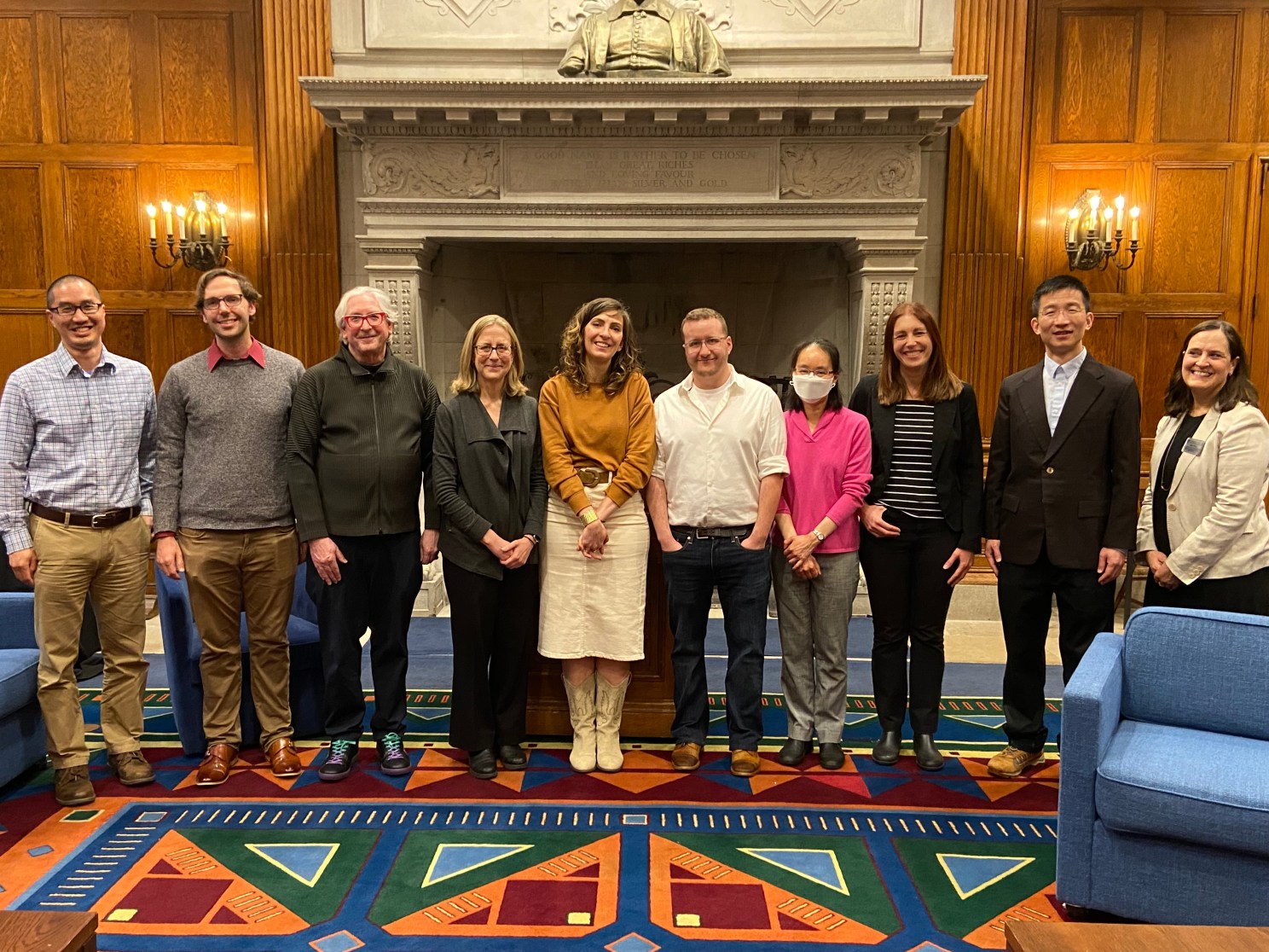Senior Associate Dean for Faculty Affairs Kwok Yu (from left), Elliot Turley, Alain Veil, Dean of Undergraduate Education Amanda Claybaugh, Sien Overshade, Matt Reichert, Janet Chen, Raquel Vega Duran, Xingang Chen, and Associate Dean of Undergraduate Education Gillian Pierce