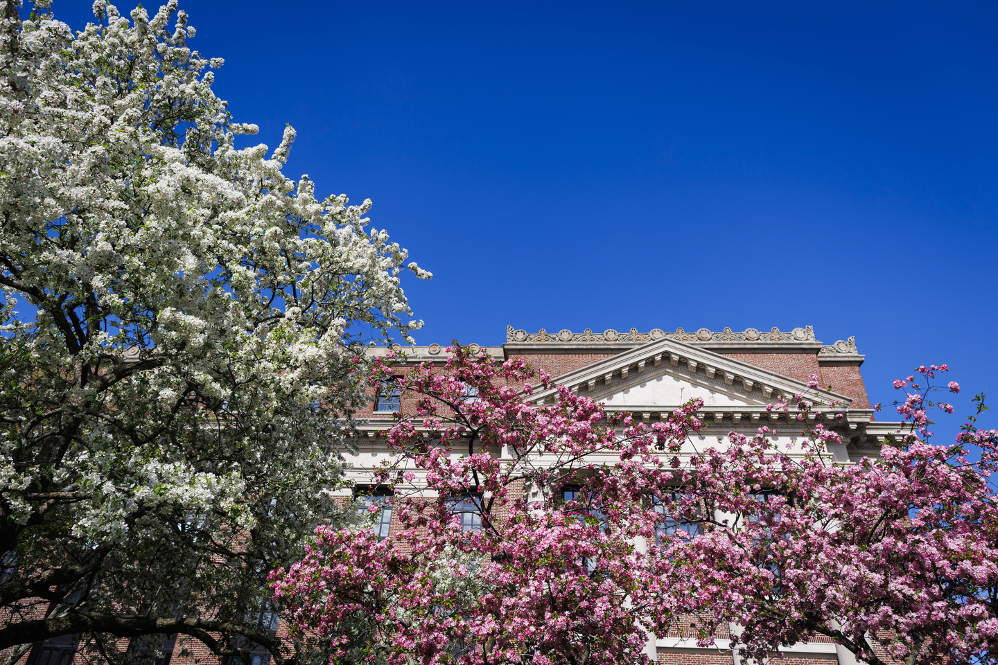 Spring blossoms on view outside Widener Library