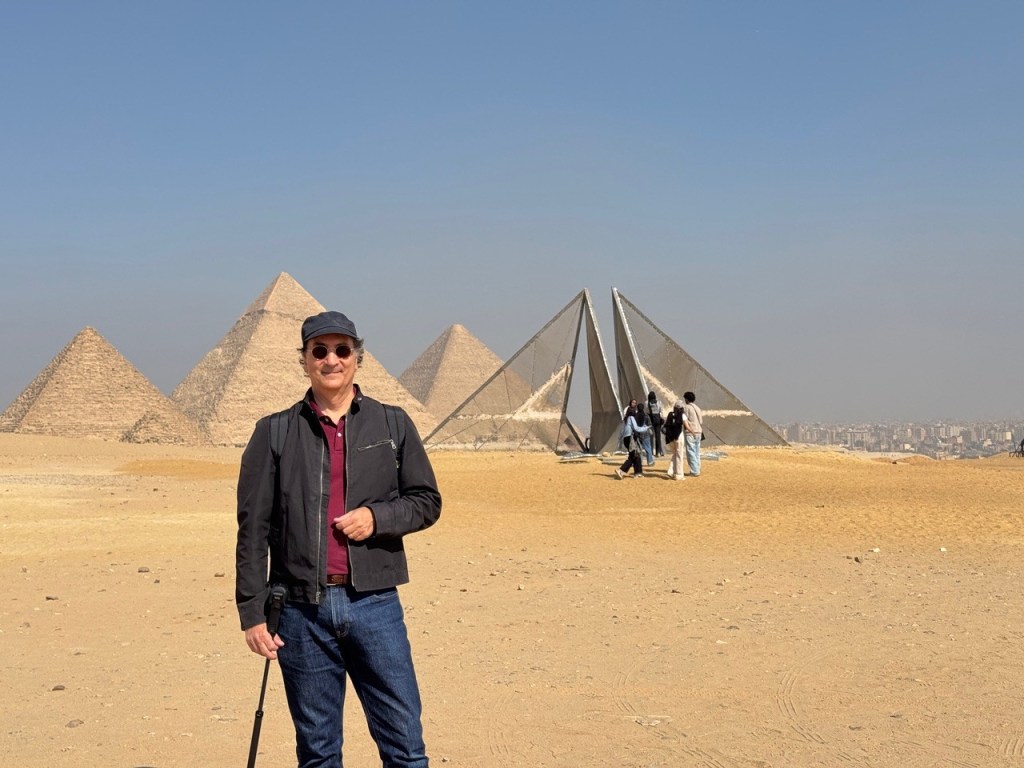 In 2021, the organization launched the first ever contemporary art exhibition at the Pyramids of Giza, where they received half a million visitors in two weeks. Ghaffar took the HarvardX EdX online course “Pyramids of Giza: Ancient Egyptian Art and Archaeology” with Barbara Bell Professor of Egyptology and HMANE Director Peter Der Manuelian to prepare to work at Giza.